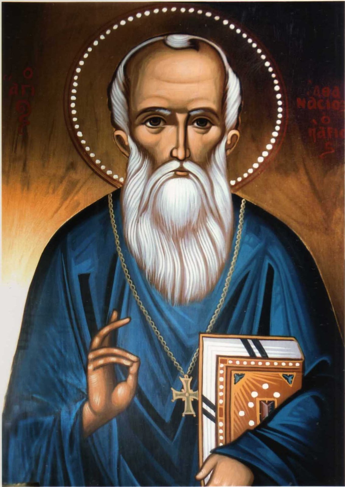 [7] Φορητή εικόνα του Αγίου Αθανασίου του Παρίου στον Ιερό Ναό Παναγίας Εκατονταπυλιανής Πάρου. Ιστορήθηκε από τον Κωνσταντίνο Τριαντάφυλλο και αποτελεί δωρεά του αοιδίμου Μητροπολίτου Παροναξίας κυρού Αμβροσίου Β’.